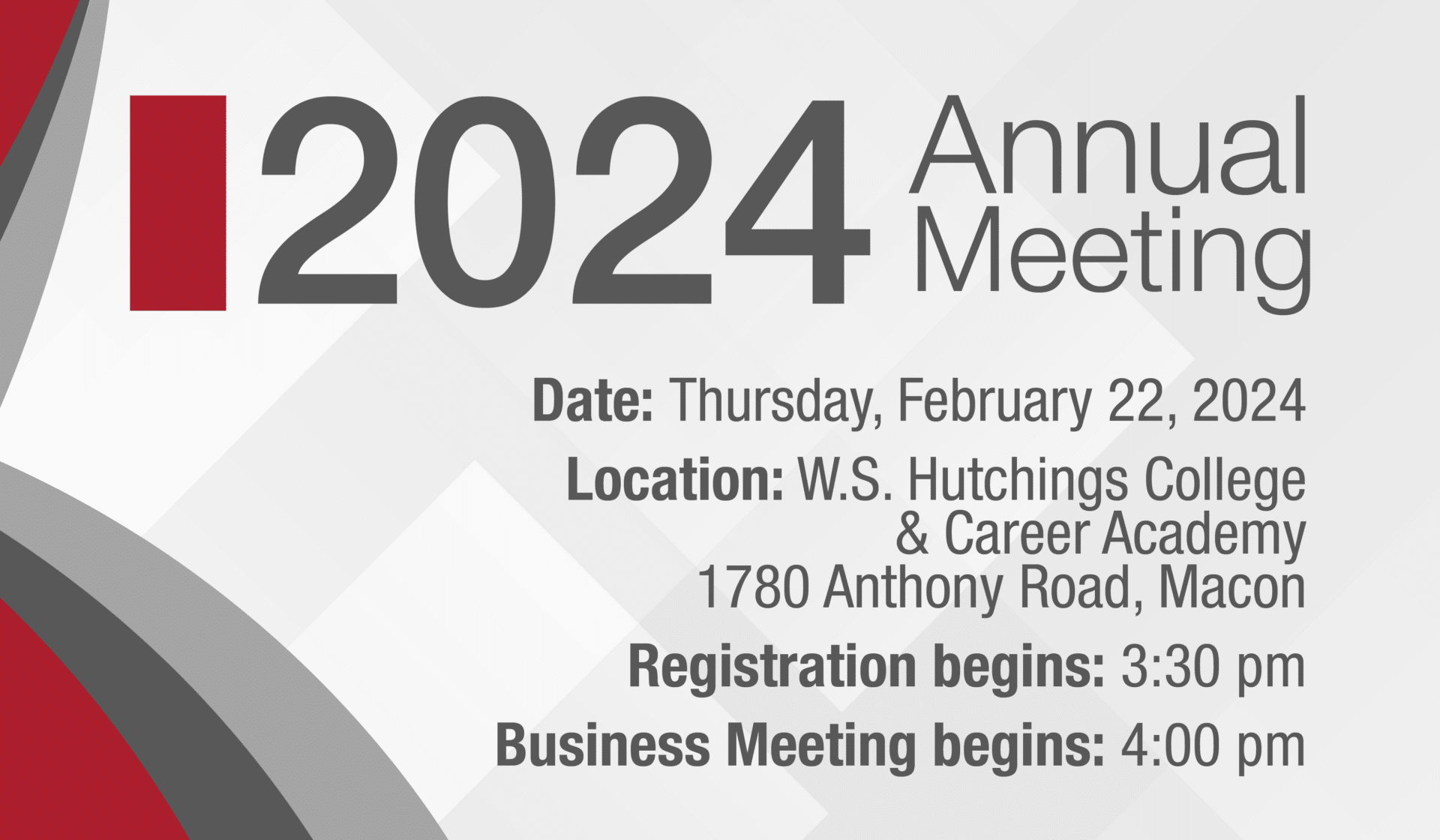 Members are invited to attend MidSouth Community Federal Credit Union’s Annual Meeting on Thursday, February 14, 2019, at Hutchings College & Career Academy. This venue houses our Hutchings branch, in partnership with the Bibb County School District.