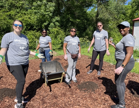 The Gardens at BrookdaleMidSouth Community team members recently volunteered at The Gardens at Brookdale. In just one year’s time, The Gardens have flourished with mature vegetation and added compost piles and a flower garden. The fruits and vegetables that are grown at The Gardens help feed the residents. If you’re interested in volunteering at The Gardens at Brookdale, or at the Brookdale Resource Center, please visit United Way of Central Georgia’s website to learn more.